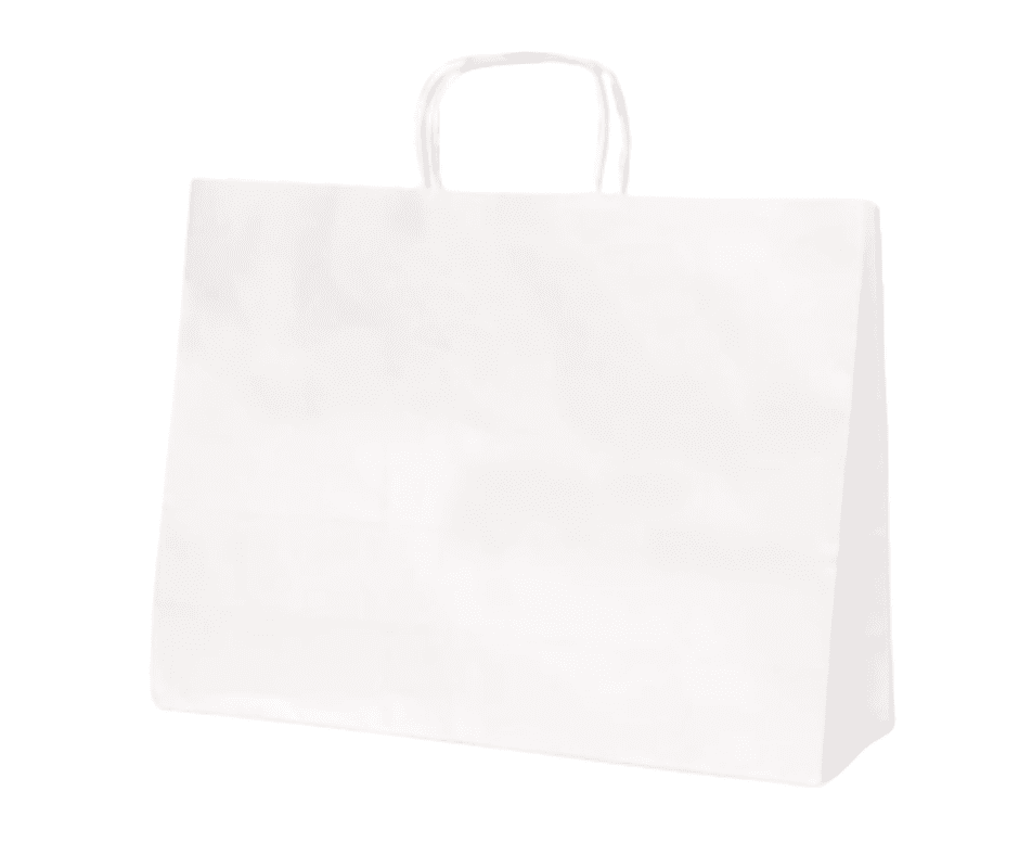שקית נייר לבנה שוכבת ידית מגולגלת בגודל 40x32x12 ס"מ