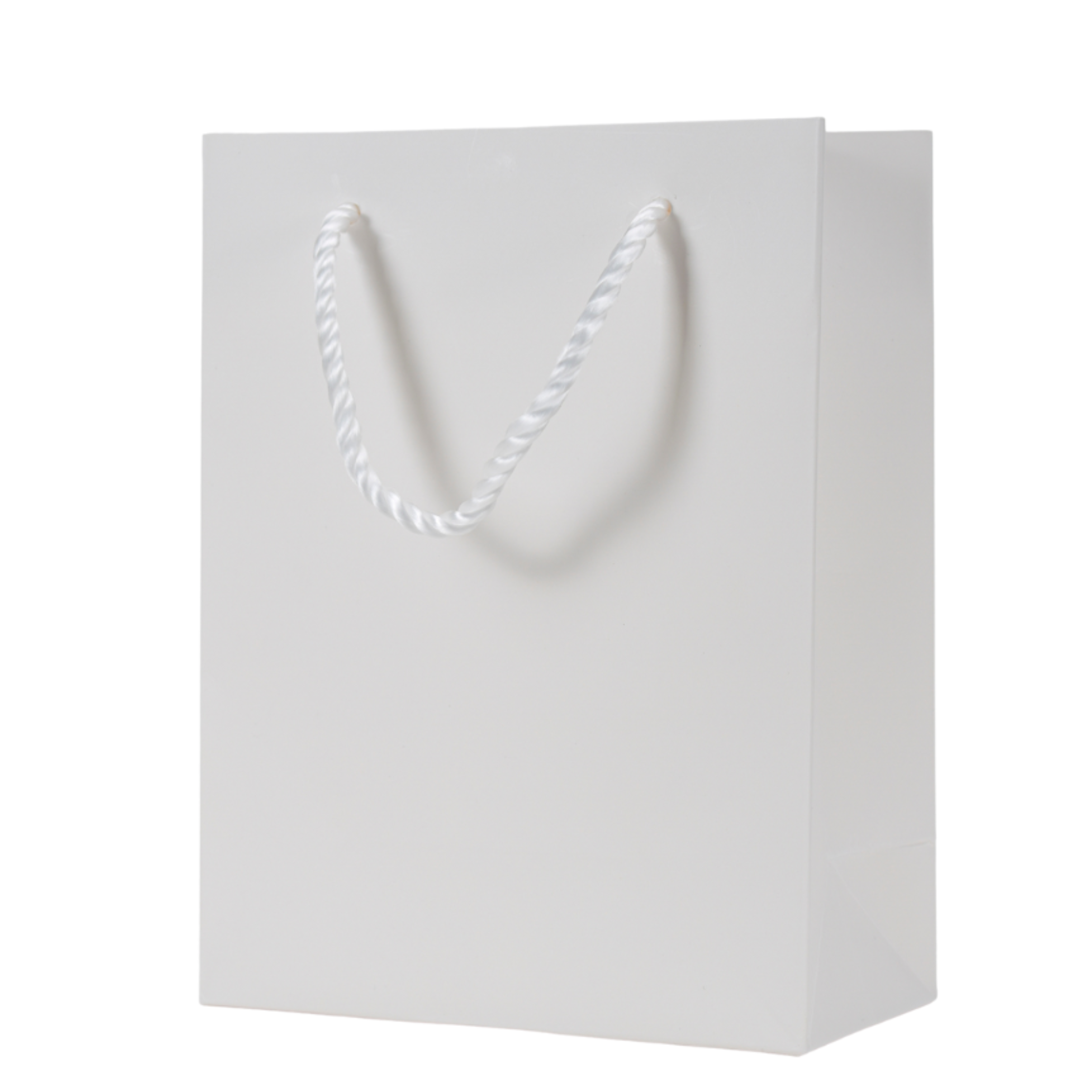 שקית קרטון מהודרת קטנה עם למינציה מט וקרטון לחיזוק בתחתית